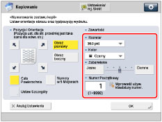 Wydajność drukowania może nie być optymalna, zależnie od zawartości oryginału i wprowadzonych ustawień.