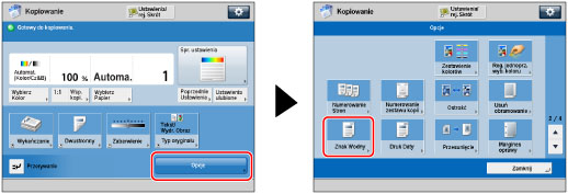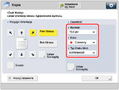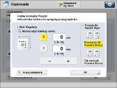 Jeżeli ustawione zostaną dowolne z dwóch funkcji [Num. Stron], [Numerowanie zestawu kopii] lub [Druk Daty] i każda z tych funkcji ma być drukowana w tej samej pozycji, komunikat proszący o potwierdzenie zostanie wyświetlony po naciśnięciu na