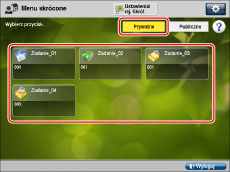 Jeżeli wyłączysz <Wyświetl Ekran Potw. Podczas Oddzwaniania> dla ustawień przywoływania w czasie rejestrowania w Szybkim menu, ekran potwierdzenia przed rozpoczęciem przetwarzania ustawień zarejestrowanych pod przyciskiem nie zostanie wyświetlony. (Patrz „Rejestrowanie przycisków publicznych/prywatnych.”)