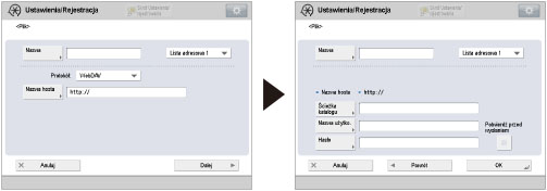 Jeżeli na ekranie dotykowym zmienisz język, [Nazwa hosta] i [Ścieżka katalogu] mogą nie być wyświetlane prawidłowo.