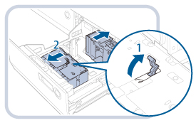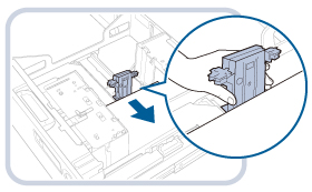 2. Przesuń płytki zmiany formatu (przednie) i płytki zmiany formatu (tylne), aby dopasować je do formatu papieru. |