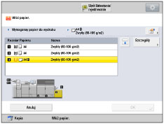 Jeżeli w trakcie drukowania pojawi się komunikat podpowiadający o konieczności załadowania papieru, wtedy pozostałe strony zostaną automatycznie wydrukowane po włożeniu właściwego papieru. W przypadku wybrania innego źródła papieru, pozostałe strony zostaną wydrukowane po wciśnięciu klawisza [OK].