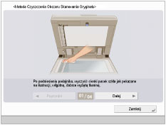 Jeżeli oryginały są skanowane z wykorzystaniem podajnika, mogą występować sytuacje, w których oryginał nie będzie skanowany prawidłowo i będą widoczne smugi na kopiach. W taki wypadku, należy wyczyścić obszar skanowania oryginałów, korzystając ze wskazówek wyświetlanych w [Metoda Czyszcz. Obsz. Skanow. Oryginałów] w [Regulacja/Konserwacja] (Ustawienia/rejestrowanie).