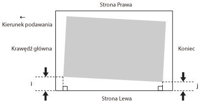 Jeżeli wydrukowany obraz jest ukośny, można poprawić jego pozycję wyjustowanie marginesów 'i', czyli odległości od lewej krawędzi papieru do obszaru drukowania (również 'j').