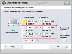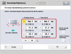 Jeżeli pozycja obrazu różni się znacznie od żądanej, dokładność korekcji można poprawić drukując kilka stron testowych i wykorzystując średnią, zmierzoną długość.