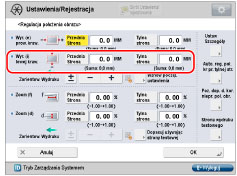 Po ponownym otwarciu ekranu po jego zamknięciu za pomocą przycisku [OK], wartości na ekranie wrócą do '0'. Niezależnie od tego, wyregulowana wartość nadal ma zastosowanie w polu Całkowite. Jeżeli czynności zostaną powtórzone, należy sprawdzić długość 'i' na nowej stronie testowej i wprowadzić wartości ponownie.