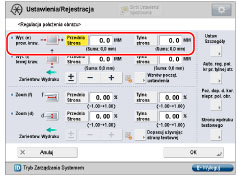 Po ponownym otwarciu ekranu po jego zamknięciu za pomocą przycisku [OK], wartości na ekranie wrócą do '0'. Niezależnie od tego, wyregulowana wartość nadal ma zastosowanie w polu Całkowite. Jeżeli czynności zostaną powtórzone, należy sprawdzić długość 'e' na nowej stronie testowej i wprowadzić wartości ponownie.