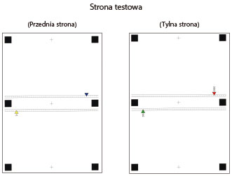 Aby szybko wyregulować położenie obrazów drukowanych na przedniej i tylnej stronie arkusza papieru, można dostosować ustawienia poprzez zeskanowanie stron testowych z wykorzystaniem arkusza głównego.