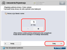 Wprowadzić liczbę stron testowych, które mają zostać wykonane → nacisnąć [Dalej].