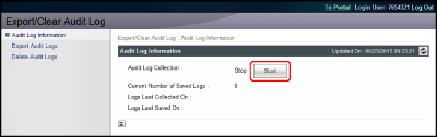 Aby wygenerować Rejestr połączeń sieciowych, Rejestr uwierzytelniania skrzynki pocztowej, Rejestr działań wykonywanych na dokumentach w skrzynce pocztowej/skrytce komunikatów wchodzących, Rejestr zarządzania systemem, wybierz [Save Audit Log] dla [Save Audit Log] w [Device Management] w [Management Settings] (Ustawienia/rejestrowanie) → i naciśnij na [OK].