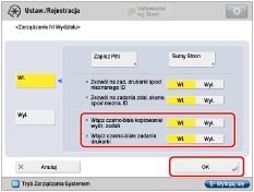 Wyłącz <Zezwól na zadania kopio./wydr. czar.-bia.>, aby nie wyświetlać [Kopia/wydruk czarno-biały] na ekranie wprowadzania NI wydziału oraz PINu.