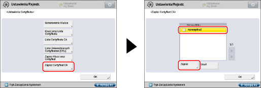Naciśnij na [Zapisz Certyfikat CA] → wybierz nazwę pliku → i naciśnij na [Zapisz].
