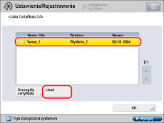 Wybierz certyfikat CA, który ma zostać usunięty → naciśnij na [Usuń].