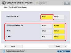 Jeżeli nie chcesz określać ustawień numerowania zestawu kopii, naciśnij na [Wyłącz].