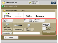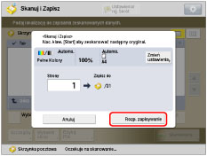 Istnieje możliwość skanowania i zapisania do 999 stron jednocześnie. Jeżeli dwustronne oryginały są skanowane za pomocą podajnika, istnieje możliwość zapisanie do 1000 stron. Po osiągnięciu maksymalnej liczby zeskanowanych oryginałów, wyświetlony zostaje komunikat z zapytaniem o zapisanie.