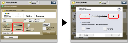 W czasie skanowania można wyregulować zabarwienie do najbardziej odpowiedniego poziomu dla oryginału.