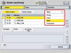 Użytkownik może również anulować zadanie wysyłania, wciskając klawisz