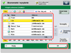 → [Skanuj i wyślij] → [Książka Adresowa].