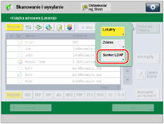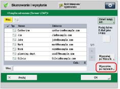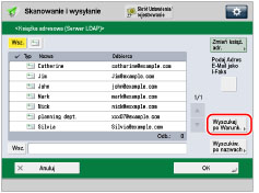 Jeśli naciśniesz na [Rozpo. wyszukiwa.] bez podawania jakichkolwiek kryteriów przeszukiwania, to wyświetlone zostaną wszystkie adresy zapisane na serwerze LDAP.