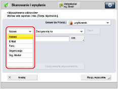 Jeżeli wynik wyszukiwania po skorzystaniu z opcji [Wyszukaj po Warunk.] jest wyświetlony na liście, nie ma możliwości wybrania funkcji [Wyszukiw. po nazwach], aby zmniejszyć liczbę wyników.
