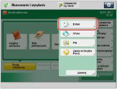 Jeżeli za pomocą klawiatury wyświetlanej na ekranie dotykowym wprowadzany będzie adres e-mail, adresy zarejestrowane w Lokalnej książce adresowej, które odpowiadają początkowym znakom wprowadzanego adresu zostaną automatycznie podświetlone na żółto. Aby wybrać jeden z zarejestrowanych adresów, należy nacisnąć na [OK]. Aby wprowadzić inny adres e-mail, należy podać pełny adres docelowy. Można również określić odbiorcę poprzez naciśnięcie na celem wyświetlenia listy potencjalnych odbiorców. Adresy e-mail które są zapisane wraz z kodami dostępu nie są wyświetlane. |