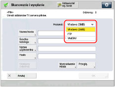 Gdy po włączeniu zasilania urządzenia, należy odczekać, aż upłynie czas ustawiony w [Czas oczekiwania na połą. przy uruchomieniu], aby nacisnąć na [Przeglądaj]. Transmisja sieciowa nie jest możliwa, zanim nie minie czas uruchomienia. Aby uzyskać więcej informacji, patrz instrukcja obsługi dostarczona wraz z Serwer imagePRESS.