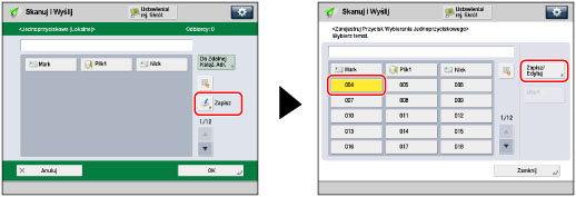 Jeżeli chcesz również zapisać dane, które mają zostać wysłane do skrzynki pocztowej, naciśnij na [Zapisz w Skrytce pocztowej] → wybierz żądaną skrzynkę pocztową → naciśnij na [OK].