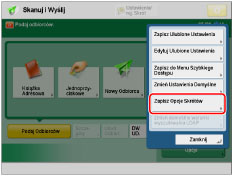 Dwa skróty opcji są wyświetlane na ekranie Skanowanie i drukowanie. [Dwustronny oryginał] oraz [Oryginały o róż. formacie] są wyświetlane jako domyślne. Te skróty mogą być zmienione do postaci często używanych funkcji.