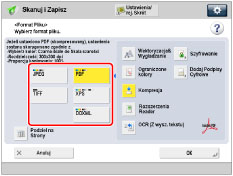 → [Skanuj i wyślij] → określ odbiorcę → naciśnij przycisk formatu pliku.