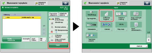 Przy skanowaniu oryginałów o poziomej (krajobraz) orientacji, np. A4R, należy pamiętać, by ułożyć je poziomo w podajniku. Jeżeli tego typu oryginały zostaną włożone pionowo, to ich tylne strony zostaną zeskanowane „do góry nogami”.