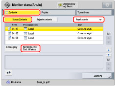 Jeżeli naciśniesz na [Zadanie] → [Rejestr zadania] → wybierz [Odbiór] z rozwijalnej listy, [Sprawdz. RX Zad. I-Faksu] również zostanie wyświetlone.