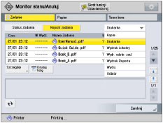 Aby uzyskać więcej informacji na temat drukowania list statusu zadań, patrz „LISTA WYSYŁANYCH ZADAŃ.”