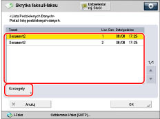 Jeżeli odebranie dokumentu dla podzielonego I-faksu zajmuje więcej, niż 24 godziny, wyłącznie dane odebrane podczas tego okresu zostaną przetworzone. Nie można odebrać jakichkolwiek pozostałych danych. Aby uzyskać więcej informacji na temat ustawień limitu czasowego, patrz „Określanie Ustawień skrytki I-faksu.”