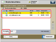 Sprawdzanie szczegółowych informacji/Usuwanie pliku zapisanego w Poufnej skrytce faksu