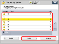 Jeżeli wybranych zostanie wiele plików i wciśnięty zostanie klawisz [Zmień nazwę pliku], to wybrana (podświetlona) nazwa pliku zostanie zmieniona.