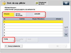 Aby usunąć wstawianie arkuszy, należy wybrać ustawienie do usunięcia → i nacisnąć na [Usuń].