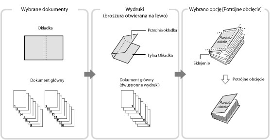 Jeżeli dla głównego dokumentu wykorzystywany jest papier o gramaturze od 80 g/m2 do 105 g/m2 i wyprowadzonych jest ponad 150 arkuszy, broszura może nie zostać wykonana z powodu swojej grubości. W takim przypadku może wystąpić zablokowanie papieru. Należy zmniejszyć liczbę stron głównego dokumentu.
