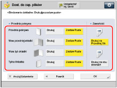 Aby rozpocząć podawanie papieru z Zespół wstawiania dokumentów-N1, wybierz [Podajnik Papieru 1] lub [Podajnik Papieru 2]. Jeżeli papier jest podawany z Zespół wstawiania dokumentów-N1 dla aktualnego zadania, naciśnij na [Zmień podaj- nik1 papier] or [Zmień podaj- nik 2 papier], aby wybrać papier dla wstawiania arkuszy.