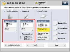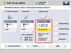 Nie obcinany: Długość docelowego formatu przekracza szerokość układarki (ok. 297 mm) lub głębokość docelowego formatu przekracza wysokość układarki (ok. 221 mm).