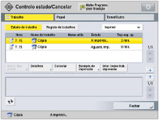 , aparece o ecrã Controlo de estado/Cancelar.(Se quiser ver o ecrã Controlo de estado/Cancelar, não precisa de introduzir qualquer PIN/ID de departamento.)Para obter mais informações sobre a Gestão ID departamento, consulte "Especificar a gestão da ID de departamento".
