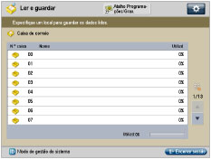 Pode especificar as programações de apresentação do local de armazenamento que é apresentado quando carrega em [Ler e Guardar] ou [Aced.fich. guardados].