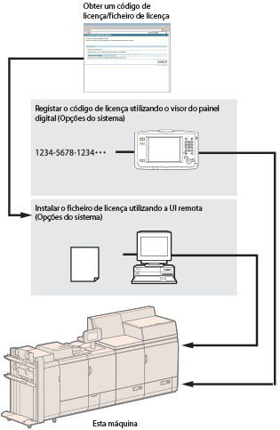 Utilize o ficheiro de licença/código de licença obtido a partir do sistema de gestão de licenças para instalar a opção do sistema.