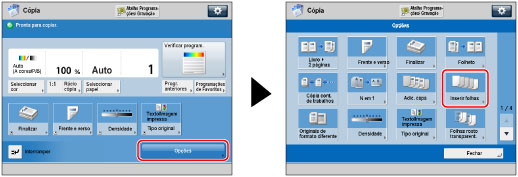 Se quiser programar [Inserir folhas] e [Adicionar capa], selecione papel do mesmo formato.