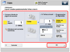 Se utilizar papel já impresso (por exemplo, com o logótipo da empresa) como folha a inserir, tem de selecionar [Deixar em branco]. Caso contrário, a máquina copia no papel pré-impresso.