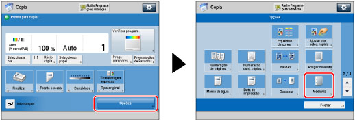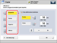 [Medianiz] desloca a imagem inteira do original de acordo com a largura designada. Assim, um original cuja imagem se estenda até às extremidades da folha pode ficar parcialmente cortado na cópia.