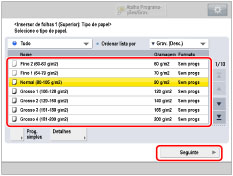 Selecione o mesmo tipo de papel que foi colocado na Unidade de inserção de documentos N1.