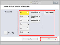 Selecione o formato de papel que foi colocado na Unidade de inserção de documentos N1.