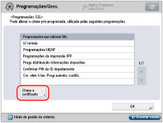 Carregue em [Programações SSL] para [Programações TCP/IP] → [Chave e certificado].