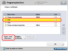 A máquina tem pré-instalados um par de chaves e um certificado de servidor. Pode utilizar o par de chaves e o certificado de servidor pré-instalados para efetuar a comunicação SSL codificada. O nome do par de chaves pré-instalado é 'Default Key'.