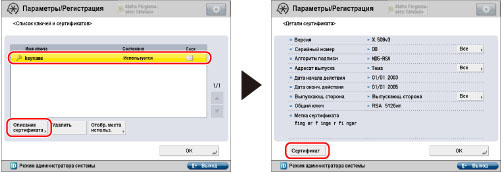 Os pares de chaves para os quais aparece a opção "Utilizd " em <Estado> não podem ser apagados porque estão a ser utilizados com a autenticação IEEE802.1X/IPSec ou porque o SSL está programado para "Ligado". Carregue em [Mostrar local de utilização] para verificar o tipo de segurança para o qual está a ser utilizado o par de chaves. Para apagar um par de chaves que está a ser utilizado apenas com o SSL, especifique as seguintes programações para "Desligado". Um par de chaves que esteja a ser utilizado para autenticação IEEE802.1X/IPSec não pode ser apagado.